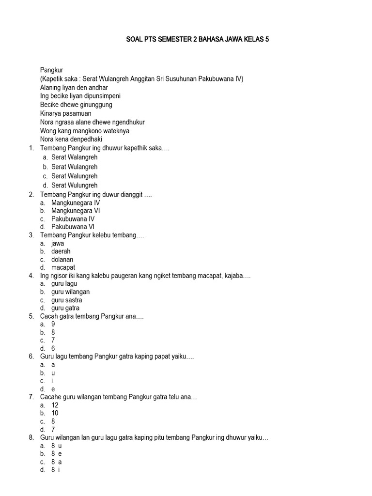 Soal PTS semester 2 kelas 3 biasanya terdiri dari beberapa jenis, antara lain: