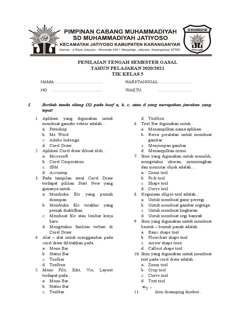 Berikut adalah kumpulan soal TIK kelas 5 semester 2 beserta kunci jawabannya: